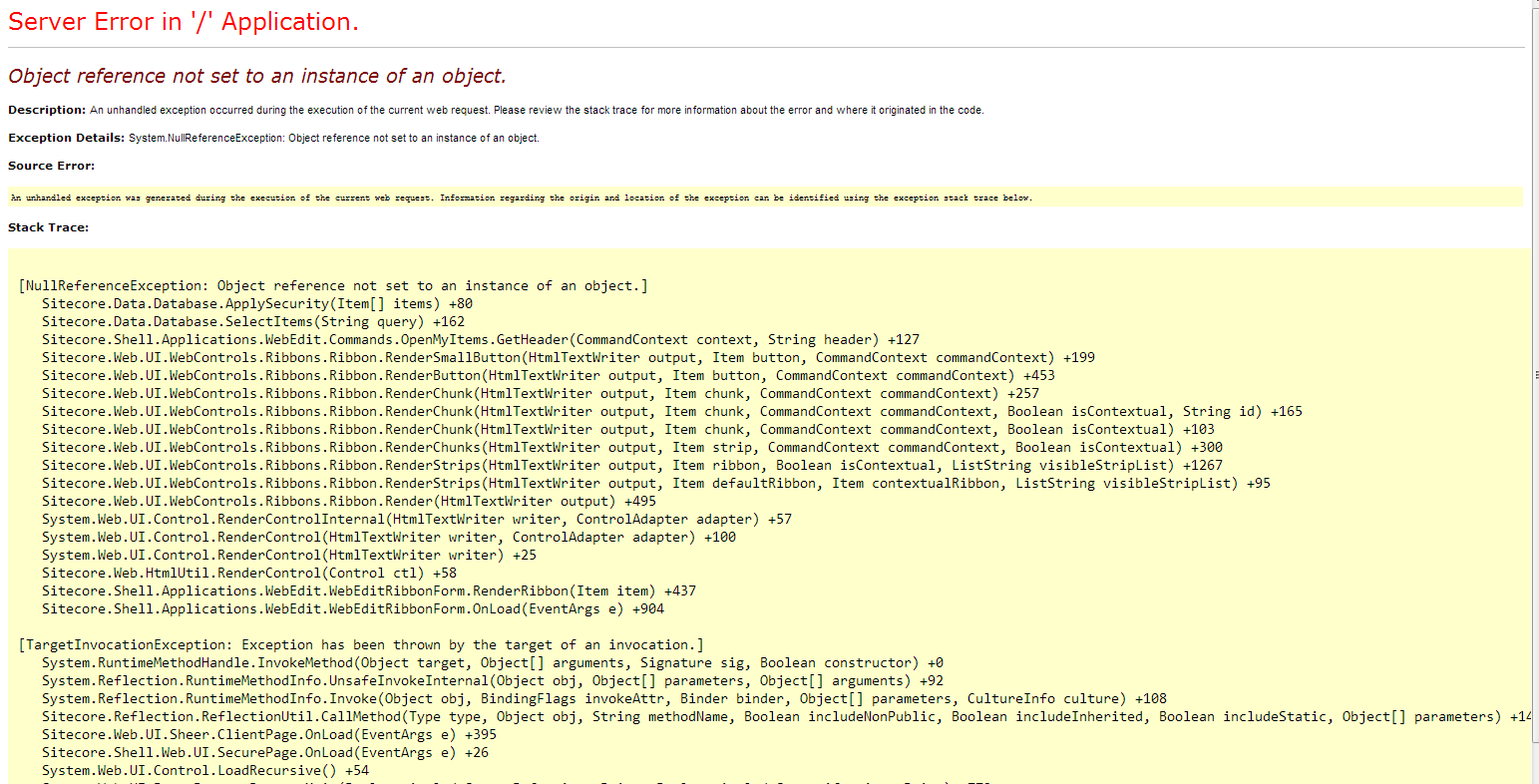 Recently I ran into an issue with Sitecore’s Page Editor where the entire header section was throwing a null reference exception. Now that makes it hard to do pretty much anything in Page Editor. When I dug into the issue, this was the error being thrown: